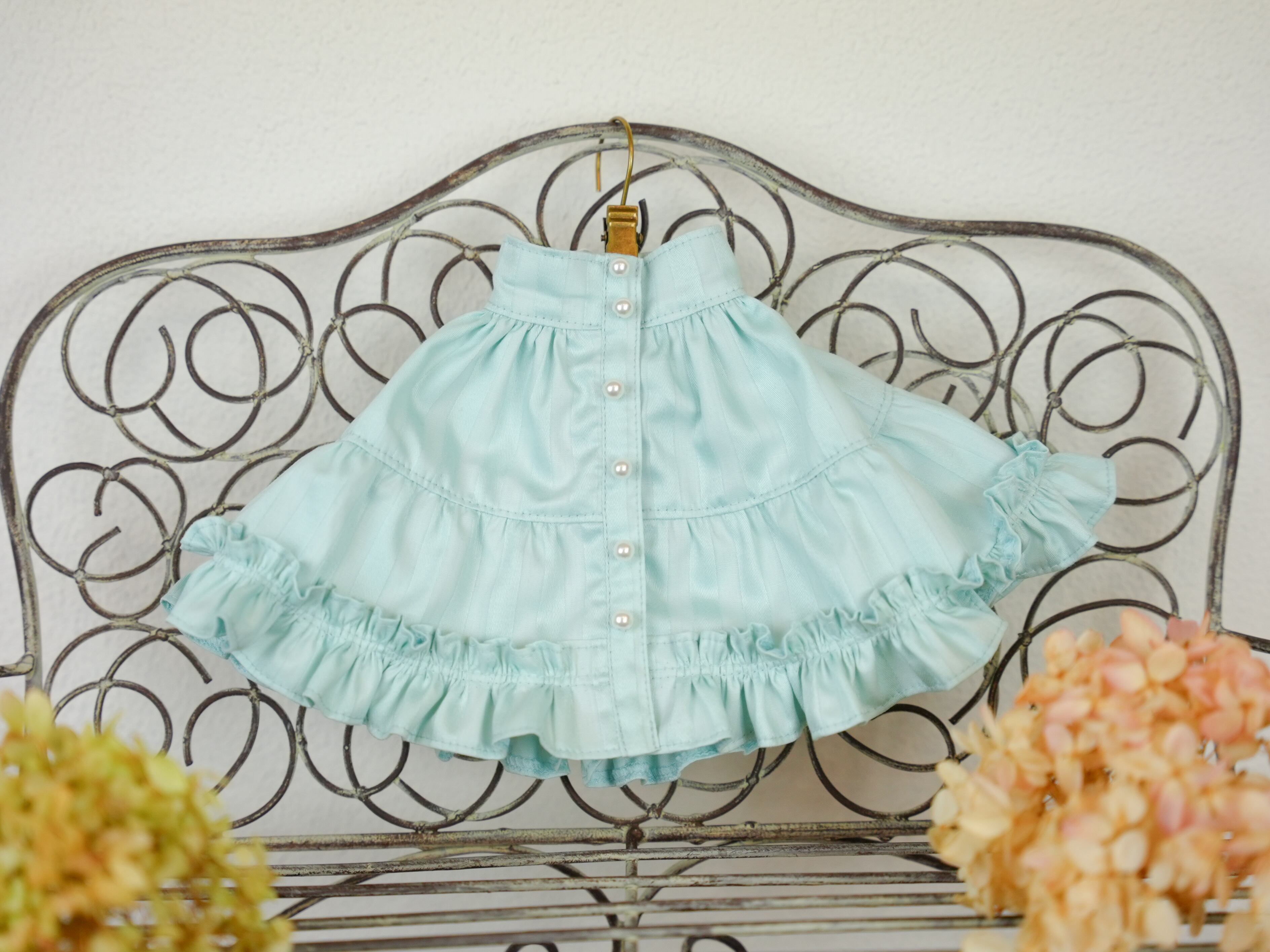 ティアードスカートとはギャザーやフリルを数段重ねて飾ったスカートの事で、おしゃまティアードスカートは3段フリルスカートです。