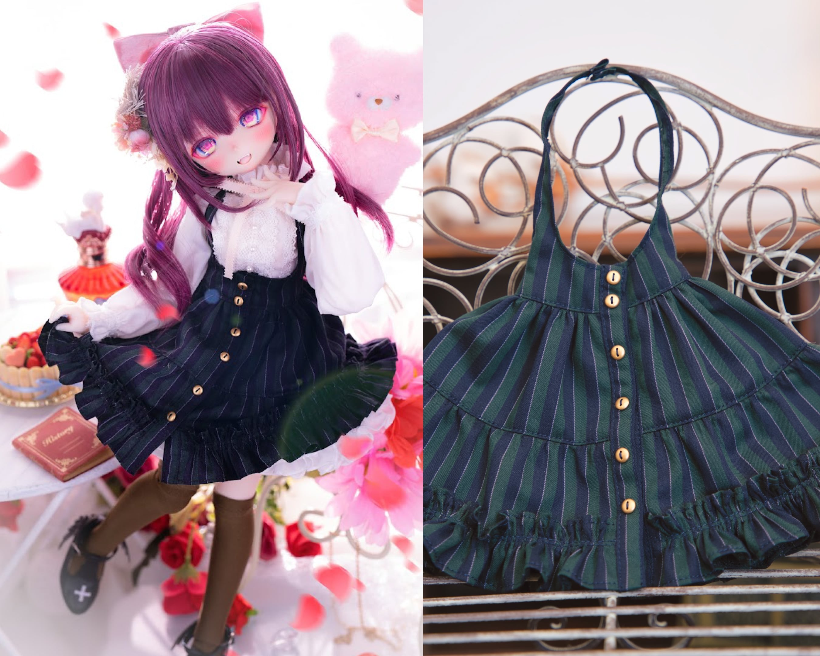 ティアードスカートとはギャザーやフリルを数段重ねて飾ったスカートの事で、おしゃまティアードジャンパースカートは3段フリルスカートです。