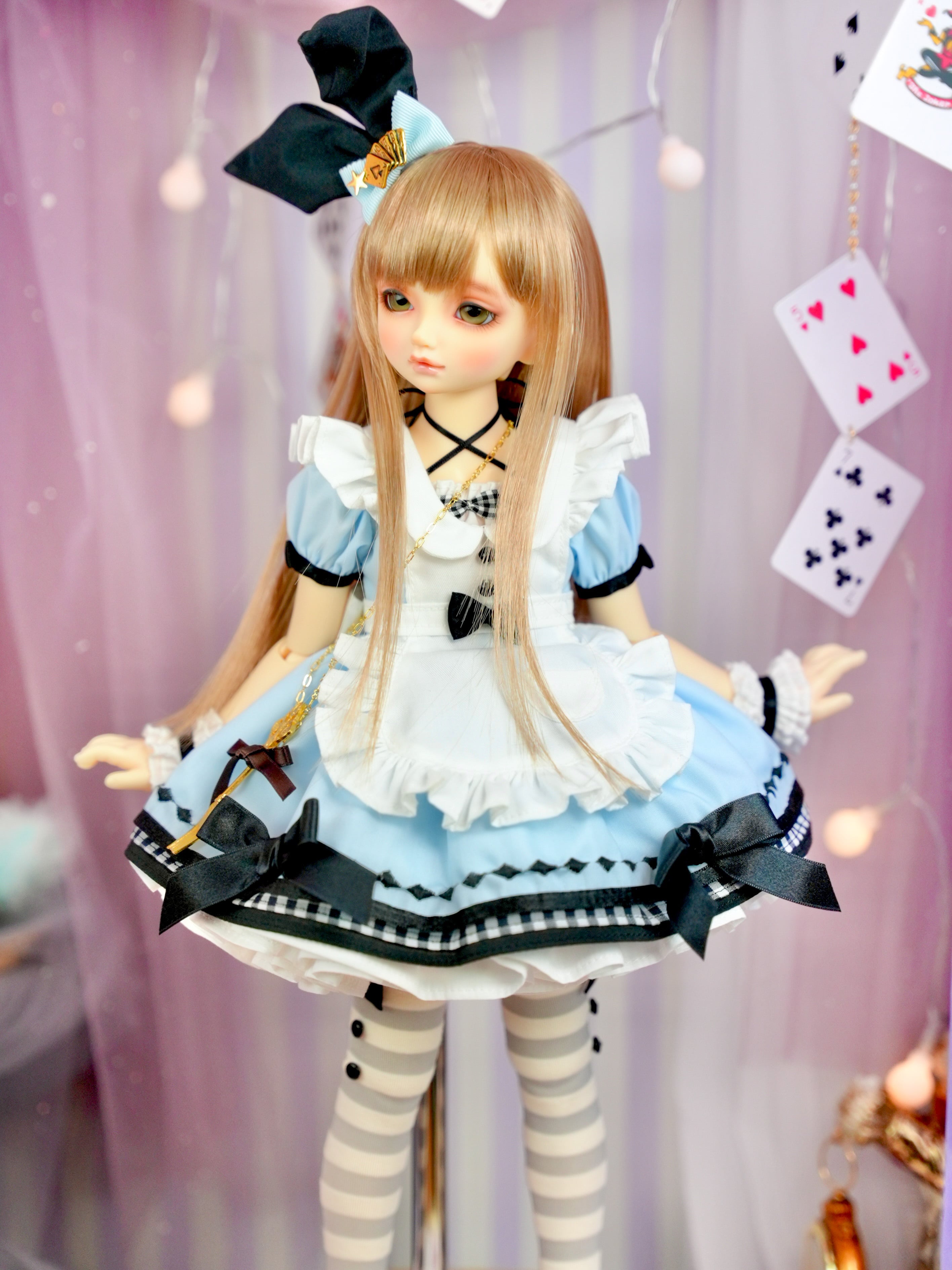 不思議の国のアリスをモチーフに楽曲を出したアイドルの舞台衣装、という設定で作りました。