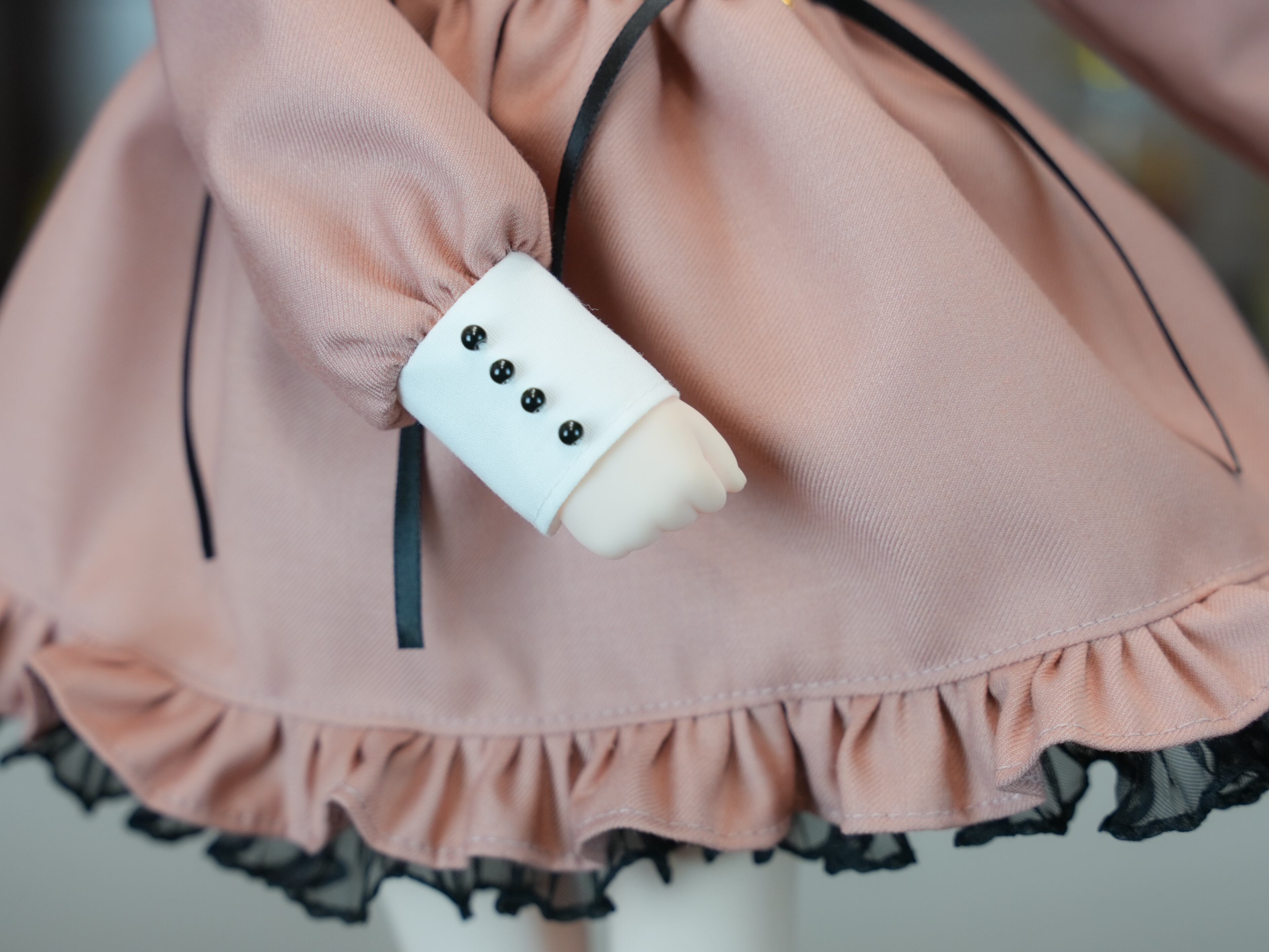 袖はワンピースの見頃に合わせて大きめに、萌え袖になるように長めに仕立てました。指を少し隠したりするポージングも可愛いと思います。
